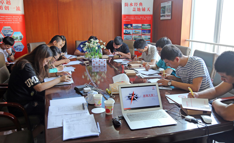 此次培訓(xùn)首先由集團(tuán)總經(jīng)理為大家進(jìn)行授課。從建筑防水行業(yè)發(fā)展開始,為新員工淺析行業(yè)發(fā)展概況及發(fā)展趨勢(shì)。與此同時(shí)還介紹了防水行業(yè)的代表性企業(yè)及行業(yè)核心競(jìng)爭(zhēng)力。讓新員工知道一個(gè)優(yōu)秀的防水企業(yè)有哪些共性,讓我們?cè)谖磥淼墓ぷ髦袨橹?,奮斗。